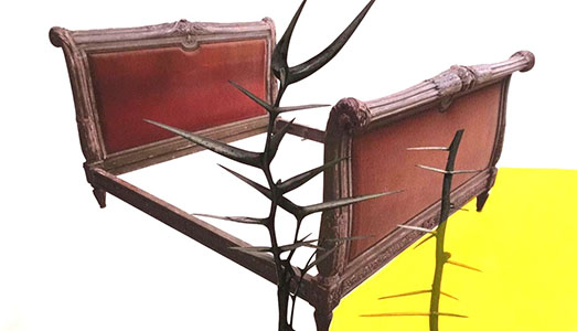 Ma veniamo alla personale “Il danno”. Nell’immaginario dell’artista, il concetto di “danno” fa riferimento a una lesione provocata in maniera silenziosa, subdola e profonda, non necessariamente fisica o visibile, ma non per questo meno determinante per l’individuo che l’ha subita. Luogo di eccellenza per l’esercizio di questa forma di violenza, è l’ambiente domestico. Le opere esposte da oggi nella galleria romana, elevate allo statuto di oggetti emblematici, non solo ci costringono a prendere visione di tali meccanismi di sopruso e a diventare a nostra volta consapevoli del ruolo che assumiamo in quanto testimoni e complici, ma ci invitano anche a riflettere sulle diverse declinazioni della violenza e sulle possibilità che essa stessa prospetta. In questo senso, per quanto si offra apparentemente come confine invalicabile, lo spazio della violenza può divenire terreno fertile sul quale, in maniera dolorosa e feroce, si prepara e rende possibile una reazione catartica e liberatoria. (Cesare Biasini Selvaggi)