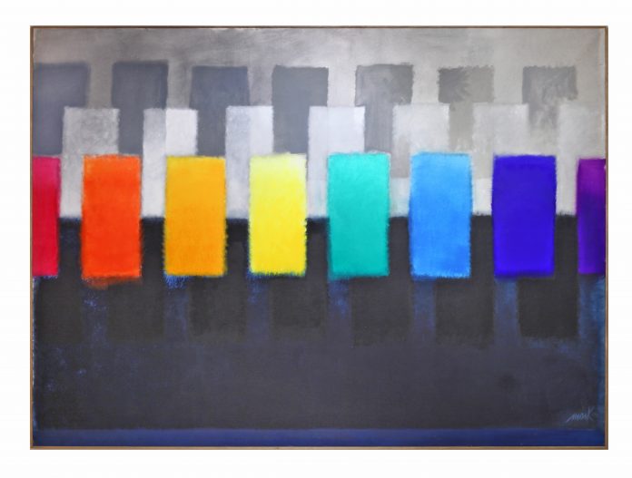 «Il percorso espositivo è punteggiato da alcune opere di grande dimensione, tra cui le prorompenti scansioni di Parade of Colours (Chromatic Constellation), 2000, in dialogo con lavori recenti provenienti direttamente dallo studio dell’artista, tra cui una selezione di opere su carta, che mettono in evidenza la ricerca della purezza e della trasparenza cromatica».
