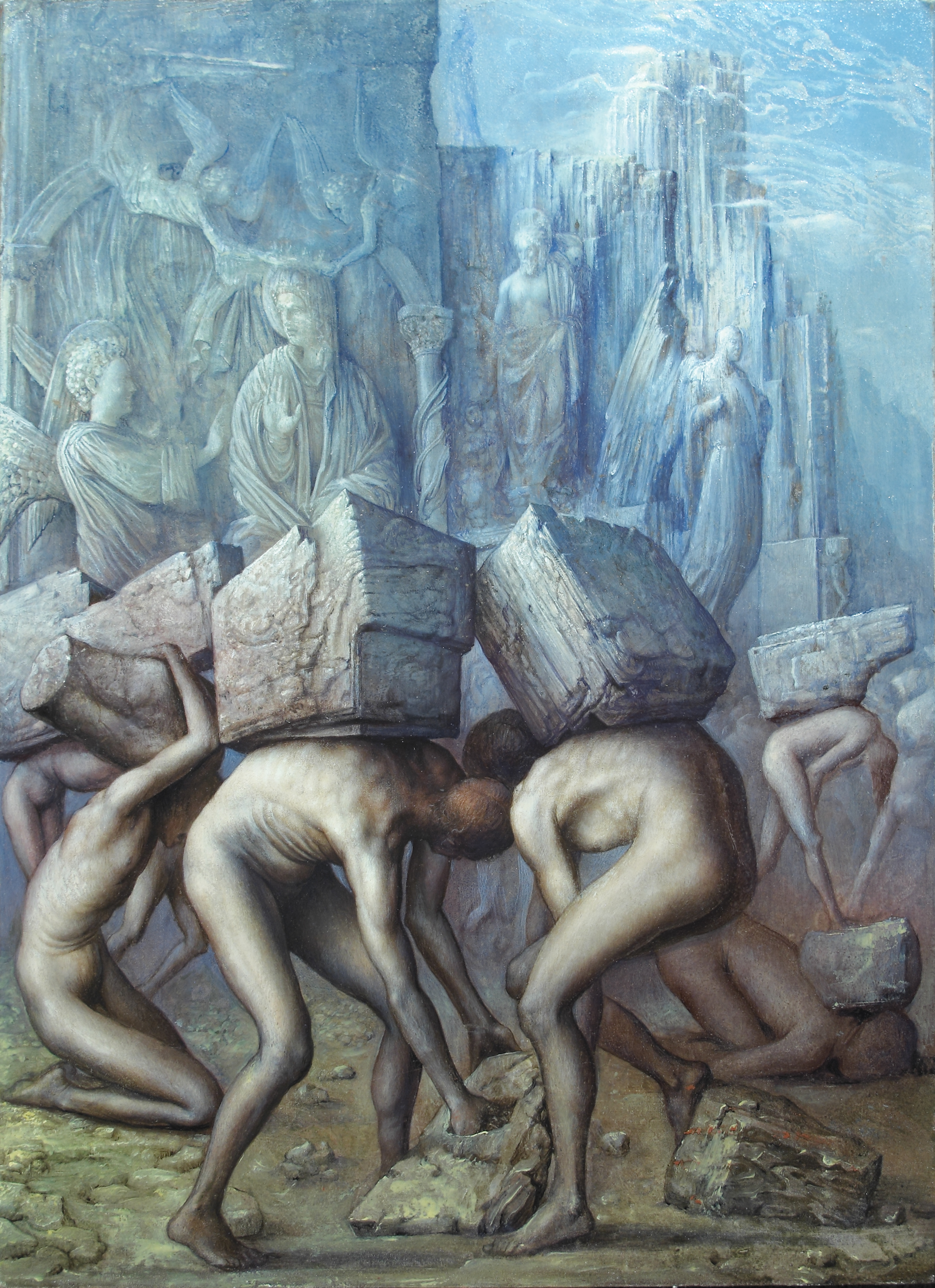 La mostra nell’anticipazione del museo: «Il nucleo principale dell’esposizione è formato dal trittico Le due morti, realizzato tra il 2020 e il 2022, composto dall’omonimo dipinto e da due quadri inediti Usura e L’inaudibile II, e dalla tavola Purgatorio, Canto XI (I Superbi), creata per il ciclo pittorico dedicato alla Divina Commedia di Dante Alighieri, fino a oggi inedita e qui esposta per la prima volta insieme agli studi preparatori.