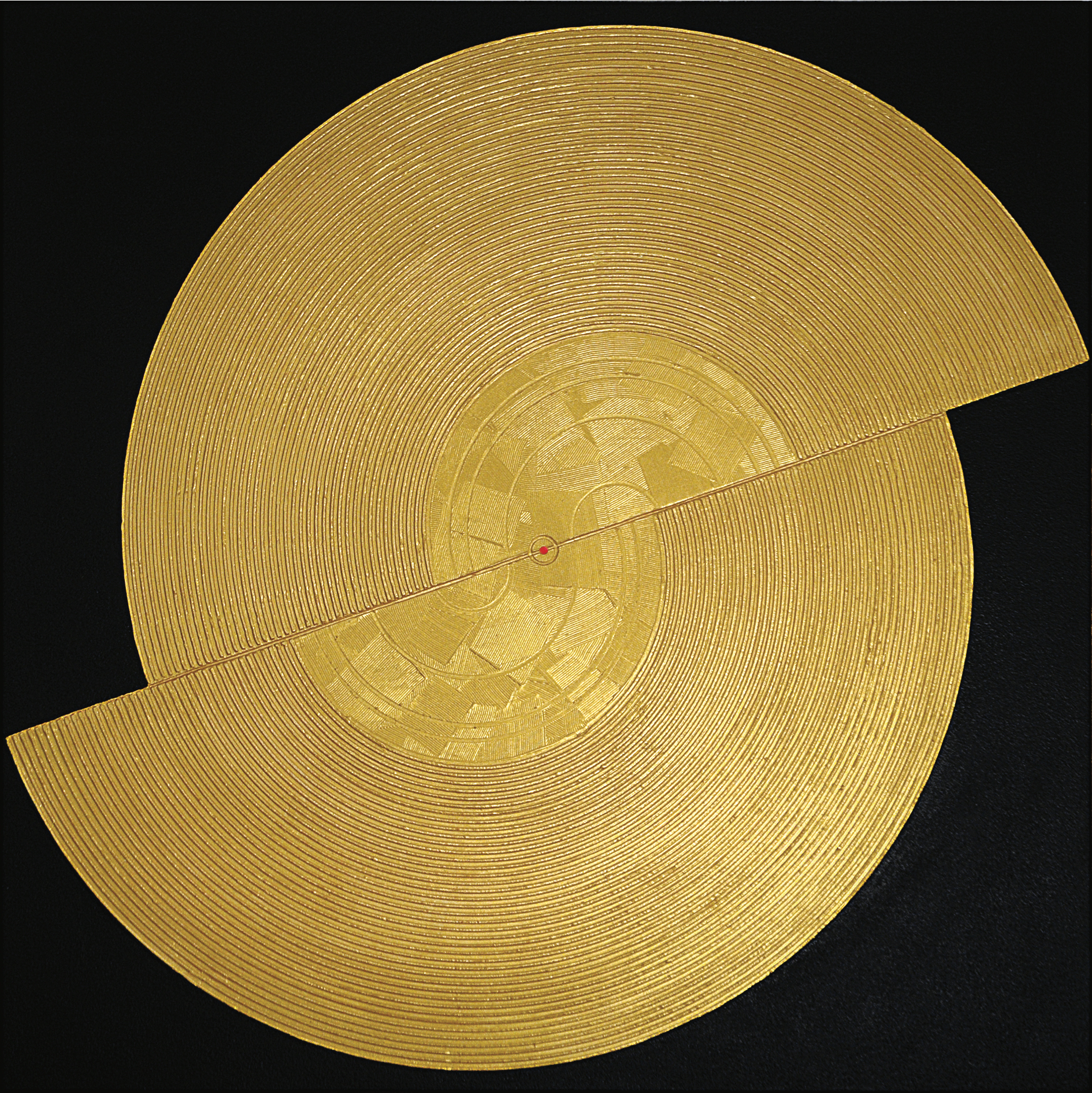 «L’età dell’oro, a cui rimanda il titolo, si riferisce ad un’auspicata epoca di ricchezza spirituale, che seguirà – a detta dell’artista – l’attuale epoca di decadenza. L’oro è qui inteso in senso simbolico: rappresenta lo stato più perfetto e prezioso della materia, portatore di innumerevoli significati, si fa simbolo di perfezione metafisica. La profonda e personale ricerca di Zappettini su Taoismo, Zen e Sufismo è infatti intrinseca a questo corpus di opere. Da queste dottrine tradizionali, l’artista recupera il ruolo dell’arte quale custode di conoscenze altissime e ancestrali, da tramandare, appunto, in una era avvenire di ritrovata armonia tra il genere umano e ciò che lo circonda. Per Zappettini la pittura è esercizio spirituale, un’operazione rituale che si traduce nella distribuzione di diverse campiture di colore che scandiscono la tela e nella stratificazione dei materiali di origine comune o industriale, lavorati con maestria artigiana e rigore alchemico.