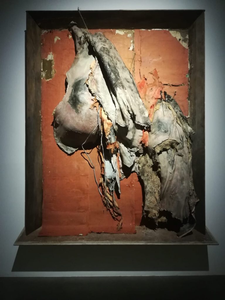 Una mostra dal forte pathos, che parte dalla crudezza della realtà per giungere all’universalità e alla speranza: un percorso espositivo che si radica nell’unione tra temi della ricerca dell’artista, il generale clima socio-politico e la visita a un laboratorio per la lavorazione delle pelli.