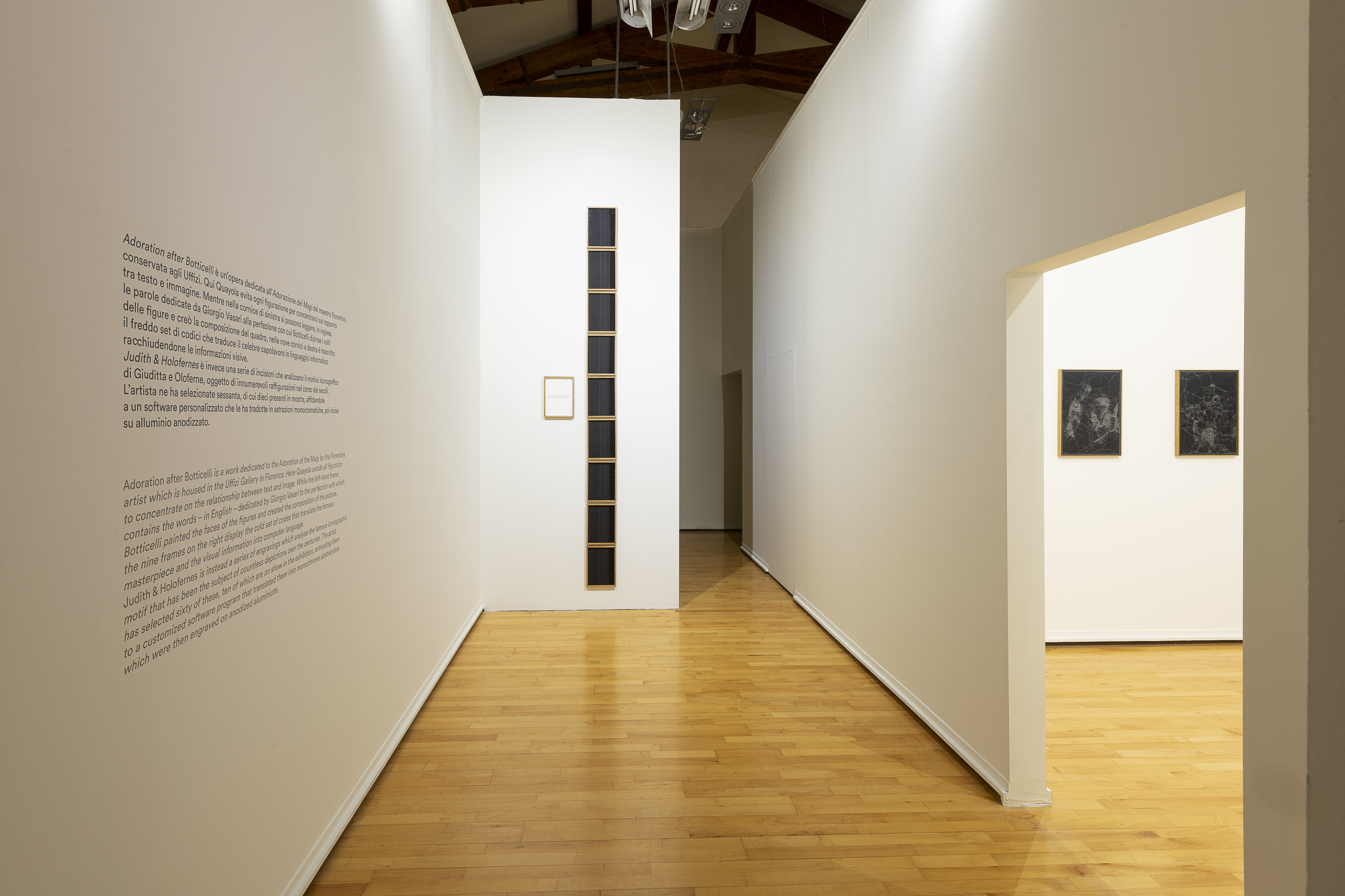 In mostra sono presenti una video-installazione e quattro serie di lavori, due delle quali prodotte per l’occasione: una sequenza di sculture e un ciclo di incisioni su alluminio anodizzato, alcune delle quali entreranno a fare parte delle collezioni del disegno gestite da Fondazione Modena Arti Visive.», si legge nel comunicato stampa.