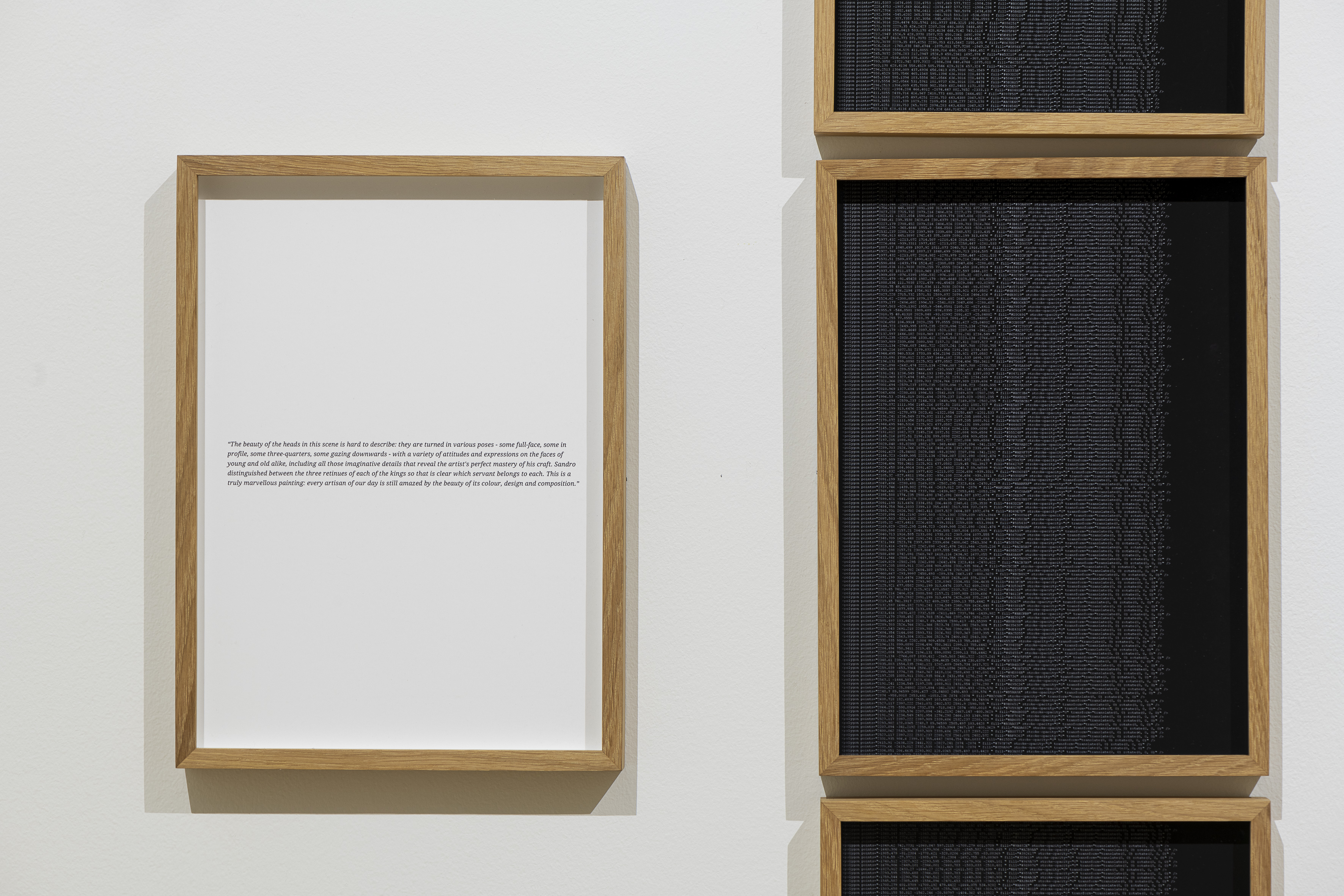 «La mostra ruota attorno all’idea di perfezione e al suo significato nella storia dell’arte occidentale. Ne Le vite di Giorgio Vasari questo termine ricorre spesso per indicare il raggiungimento dell’eccellenza da parte di pittori, scultori e architetti, nel rispetto dei canoni considerati universali di armonia e bellezza. Quayola ripercorre capolavori classici, moderni e barocchi applicandovi algoritmi che vanno alla ricerca di questi canoni, rimettendo in discussione principi fondamentali dell’attività artistica. Le regole codificate dalla storiografia e dalla critica vengono renderizzate in set di informazioni, tracce che tuttavia, nella lettura della macchina, assumono una valenza inedita e originano nuovi codici estetici», ha spiegato Fondazione Modena Arti Visive.