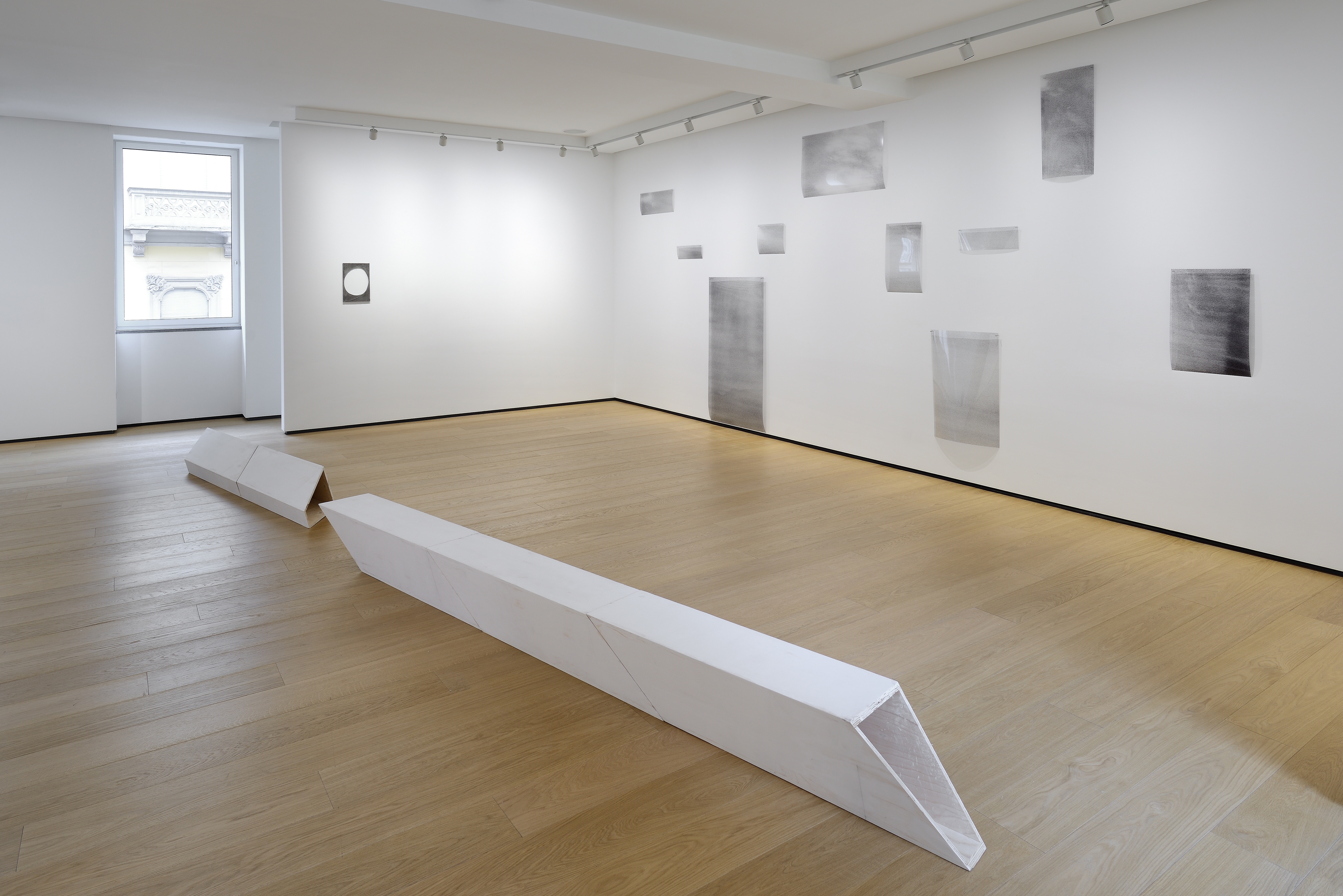 Valerie Krause propone un lavoro scultoreo articolato nell’orizzontalità e un altro fotografico invece ascendente a parete. Ambedue sono giocati sulla riduzione estrema sia dello sviluppo plastico sia della riconoscibilità dei segni, in modo da creare una sorta di enigmatico ma suggestivo paesaggio.