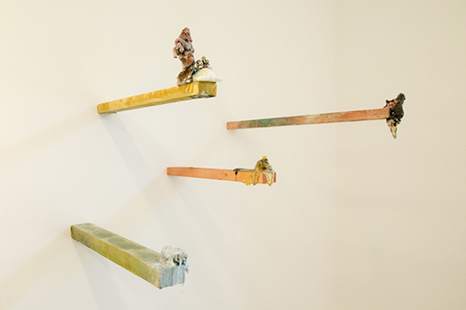 In homepage: Freccette, 2017, legno, acrilico, cacche di uccello. Photo: Francesco Basileo, courtesy: smART – polo per l’arte
