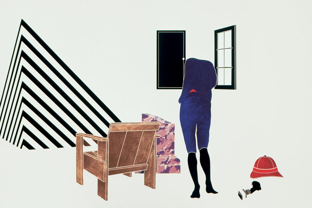 «Come in precedenti lavori, Tadini utilizza motivi ricorrenti: un elemento piramidale a strisce bianche e nere, una figura femminile in piedi senza testa, un telefono, un cappello coloniale o un rossetto rosso. Attraverso la scelta degli oggetti rende il suo viaggio più concreto. Il suo viaggio italiano riguarda la vita quotidiana contemporanea, come suggeriscono il telefono, le lettere (ci)nema, gli eleganti abiti femminili, i vari oggetti di design o la scultura di Calder. Pur includendo riferimenti all’antichità, Viaggio in Italia di Tadini tocca anche i campi del design, dell’arte, della cultura, della moda e dello stile. La sua visione italiana unisce il passato con la modernità. Questo punto di vista strettamente oggettuale, in cui la riflessione su diversi tipi di oggetti porta a una migliore conoscenza di sé, avvicina il Viaggio in Italia di Goethe a quello di Tadini che sosteneva “L’arte come mezzo per intensificare la percettibilità delle cose”. Georg F. Schwarbaner lo riassume in poche parole: “Ogni oggetto, ogni simbolo, ogni frammento di una frase e di una parola ha il suo significato specifico. Le opere di Tadini somigliano a un’enciclopedia di immagini del nostro secolo”», ha proseguito la galleria.