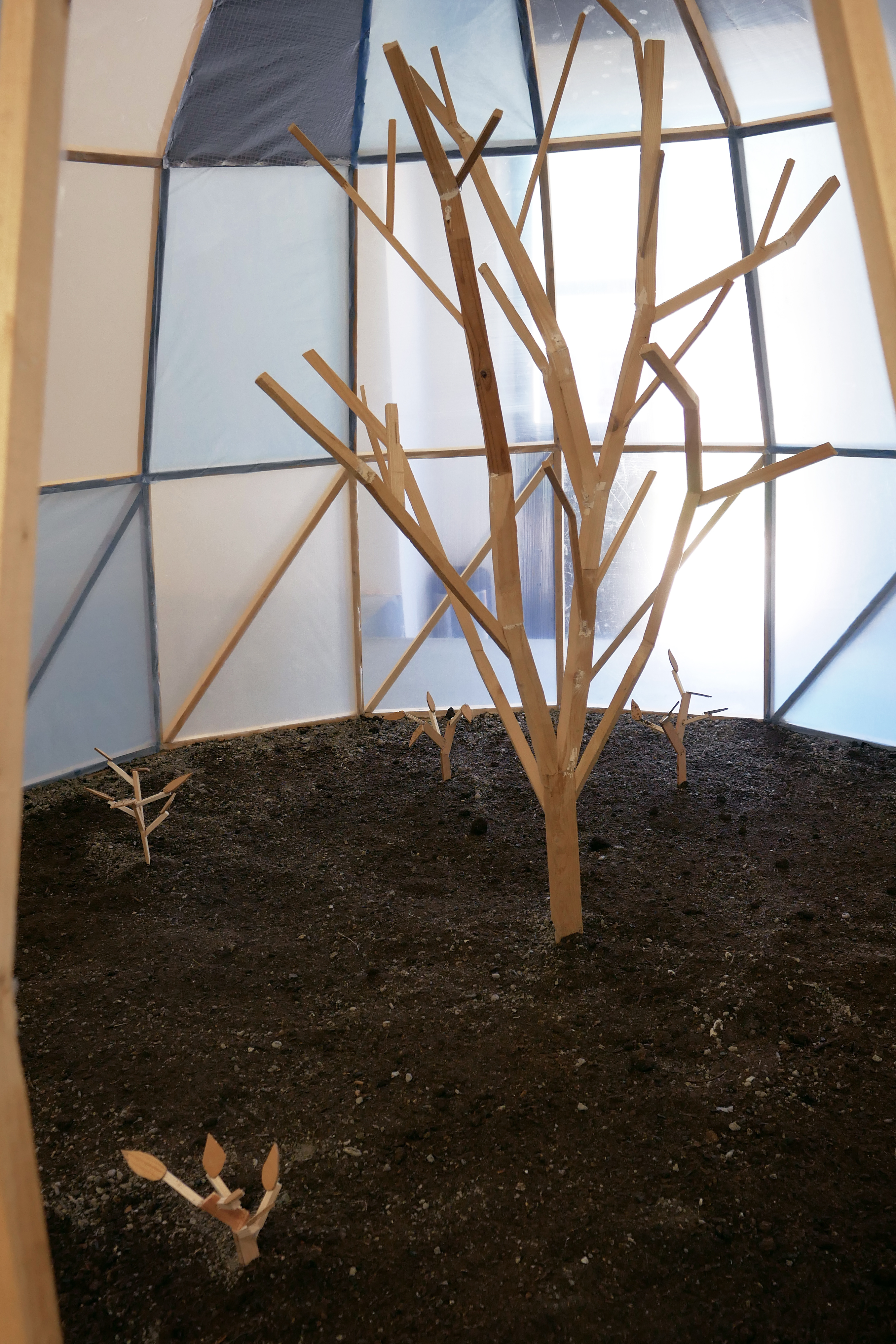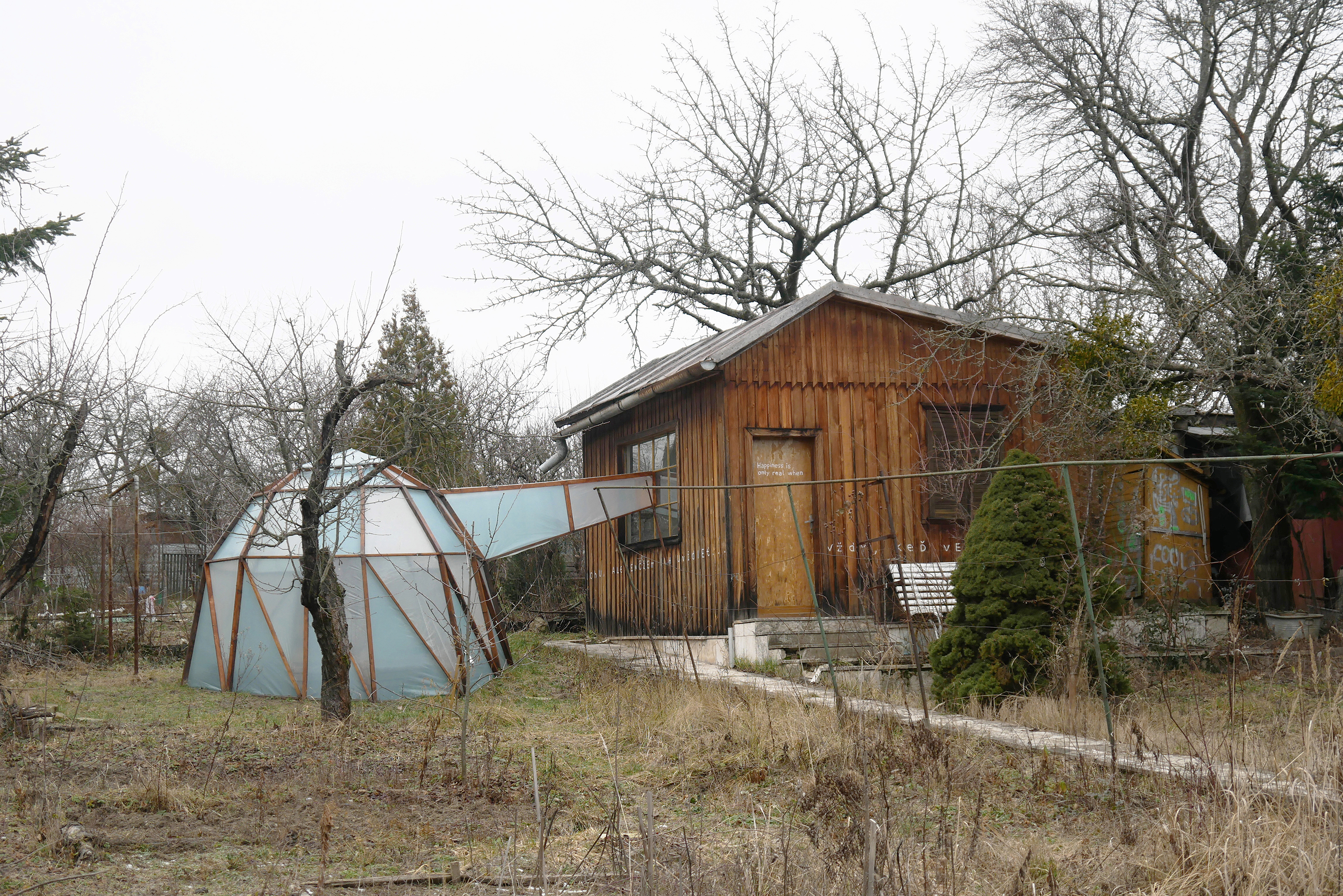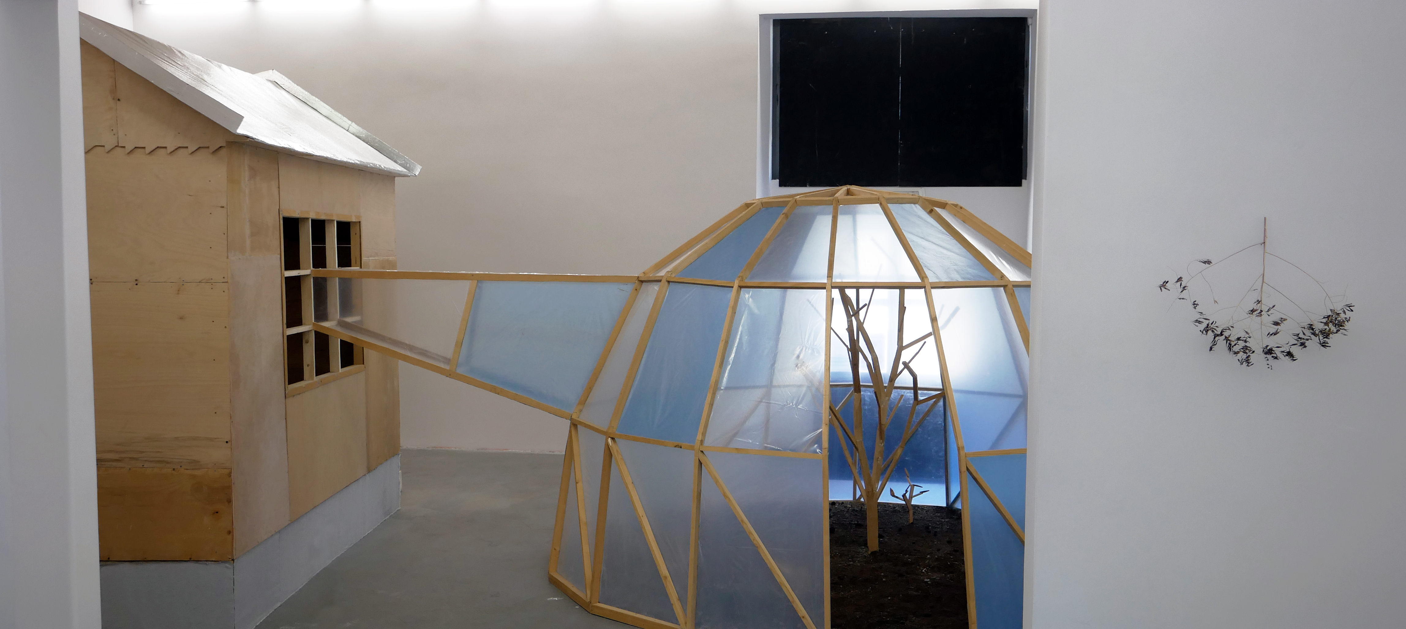 In mostra, ha anticipato AlbumArte, Oto Hudec «presenta un modello di vita autosufficiente (o piuttosto di sopravvivenza) in una visione distopica del futuro prossimo, dopo che le conseguenze fatali della crisi climatica, avranno colpito la vita sulla Terra. Il cuore del progetto è una replica in scala ridotta del cottage reale dell’artista nel suo giardino nella Slovacchia orientale, collegato a una serra per creare un sistema chiuso. Le piante nella serra producono ossigeno per gli abitanti della casa e forniscono anche una fonte di nutrimento, mentre l’anidride carbonica che esalano mantiene le piante in vita. Le persone nel cottage sono inestricabilmente legate al giardino nella serra, ne fanno parte. L’uno dipende dall’altro».