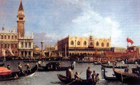 Una festa che Canaletto (Giovanni Antonio Canal, Venezia 1697-1768) ha rappresentato in numerose varianti, affidando il fascino della città lagunare alla bellezza orientaleggiante dei palazzi, alla cristallina limpidezza della luce, ma anche alle celebrazioni solenni, ai ricevimenti sontuosi.