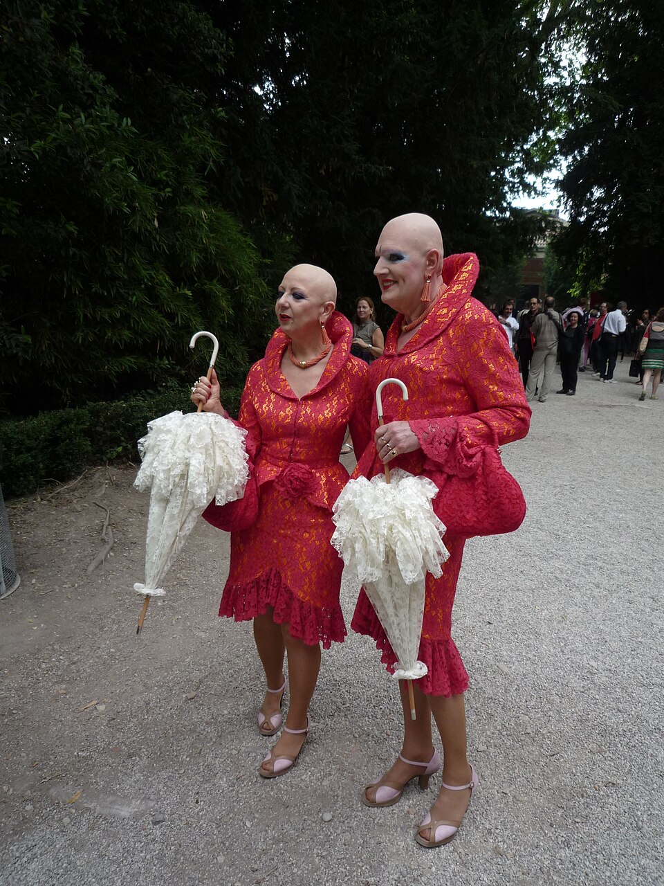 Sempre insieme, inseparabili nei loro abiti scintillanti, nel make-up identico – anche se con qualche minima, impercettibile differenza – e nell’eleganza simbiotica, EVA & ADELE hanno fatto della loro esistenza una performance continua, spingendo i confini dell’identità, del genere e dell’intimità pubblica. La loro casa a Berlino, con le pareti rosa e gli armadi colmi di vestiti e costmi, era una vera e propria Wunderkammer contemporanea. Ma la loro dimora era il mondo: fiere, inaugurazioni di mostre, musei, piazze, aeroporti.