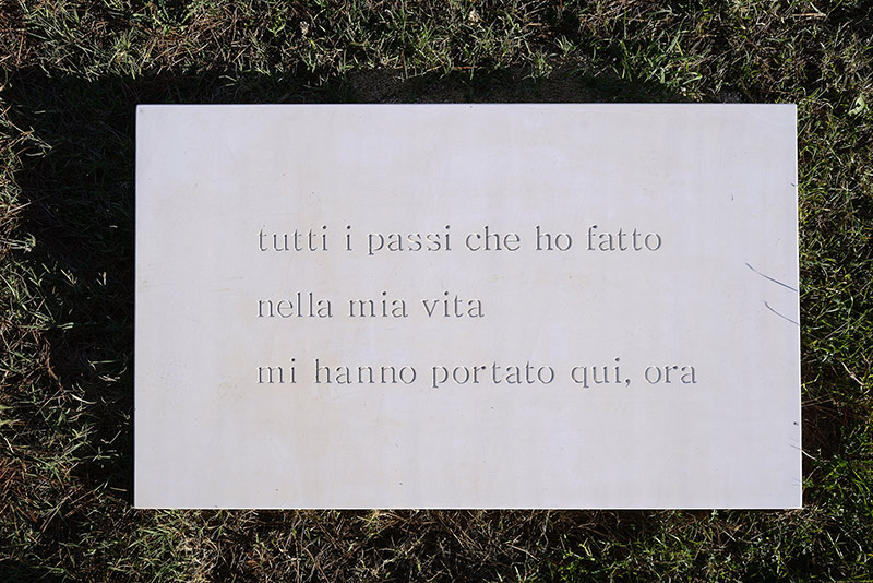 Tantissimi i progetti di arte pubblica, linguaggio che ha contribuito a raffinare in maniera significativa, come nel caso di Tutti i passi che ho fatto nella mia vita mi hanno portato qui, ora, che, dal 2004, è stato installato in diverse versioni presso l’aeroporto di Milano-Malpensa, alla stazione di Milano-Cadorna, in piazza S.M. Novella a Firenze, al Lac di Lugano, alla Serpentine Gallery di Londra e alla biennale di Kaunas, creando ogni volta una relazione specifica e significante con il contesto circostante.