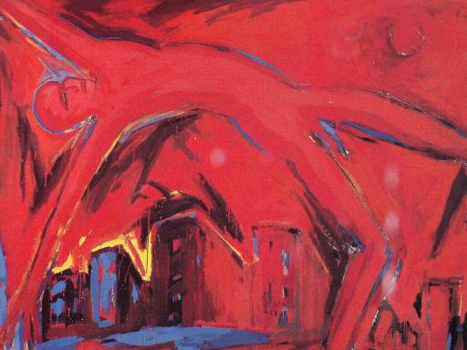 Altrove, la città è dipinta di rosso, in un abbraccio di energia. Le 70 opere in mostra a Catanzaro, fra gli autori anche Bernd Koberling (Berlino, 1938), sono produzioni degli anni ottanta, nate dal cammino verso il nuovo, metafora di una libertà negata, pittura irruente, come recita il sottotitolo della mostra. Un’arte, che raccoglie l’ansia, il disagio della società, si (ri)appropria di forme e colori, per raccontare la storia. “Una espressione pittorica- dice Wanda Ferro presidente della provincia di Catanzaro – che è un viaggio fra arte e anelito di libertà, arte,come emblema di conquiste sociali, un viaggio nel passato per ricostruire il futuro.. La mostra, che contempla anche video e documenti fotografici, esaurisce e testimonia le istanze tutte di quel tempo, in un racconto, in cui gli autori guardano se stessi, per guardare la società.