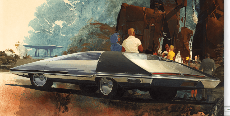 Se Star Wars ma soprattutto 2001: a Space Odyssey avevo portato il senso dell’umano verso Jupiter and Beyond, lo sguardo di Mead sembra aver colonizzato gli spazi della vita quotidiana, i grappoli di palazzi, gli angoli delle città, i neon delle insegne, i night club, i camion di servizio, ambulanze, macchine, case, cucine, elettrodomestici, ombrelli. D’altronde veniva dal design industriale dove, grazie a collaborazioni decennali con Ford Motor Company Styling, Sony, Honda e Philips Electronics, ebbe modo di disegnare di tutto. Oggettistica, macchinari, aerei, perfino navi. Si è occupato di cataloghi di numerose aziende (Celanese, Allis-Chalmers, Atlas Cement) tra cui le tavole delle US Steel Series, che ispireranno non solo George Lucas per i famosi AT-AT di Star Wars ma anche le linee di acciaio laminato del nuovissimo Tesla Cybertruck di Elon Musk.