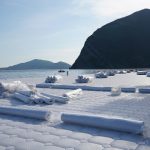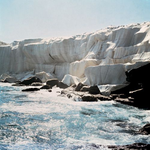«L’acqua è stata a lungo in relazione con i nostri progetti, di nuovo con i sensi, uno sbilanciamento: da una parte c’è la solidità della terra, delle rocce, e dall’altra la fluidità dell’acqua, li abbiamo fatti incontrare molte volte in molte opere: in Running Fence (1976), in California, la barriera di tessuto scompariva dentro l’oceano, mentre gli ombrelloni di Umbrellas in Giappone interagivano visivamente con l’acqua del fiume Sato. Entra in gioco anche qui la scala umana: il nostro corpo è in grandissima percentuale da elementi liquidi, noi umani siamo attratti dall’acqua in modo naturale».
