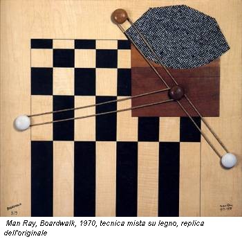 Dai primi lavori newyorkesi, quando fu colpito dalla celebre edizione dell’Armory Show del 1913 e, soprattutto, dall’incontro con Marcel Duchamp. Sono gli anni di Revolving Doors, la serie di collage dalle forme meccaniche e antropomorfe installati su un piedistallo rotante che lo spettatore poteva muovere. Furono distrutti, ma Man Ray li riportò in una serie pubblicata dall’Éditions Surréalistes a Parigi e in mostra ci sono le serigrafie del 1923, replicate nel 1972. La collaborazione con Duchamp fu fondamentale e ai due è dedicata un’ampia sezione in cui sono presenti le fotografie più note (Tonsura, Rrose Sélavy, Bonds for Monte-Carlo roulette), ma anche i temi e le passioni: gli scacchi, il corpo, il “cinema anemico”. È un incontro felice per Man Ray che sfocia negli Oggetti d’affezione così vicini al ready made di Duchamp. La mostra propone in una piccola sala le repliche d’autore di alcuni tra i suoi lavori più noti, Cadeau, l’Enigma di Isidore Ducasse, uno dei 40 esemplari dell’ Oggetto indistruttibile (o da distruggere) nella versione del 1940, Obstruction, che oscilla con i suoi 32 appendiabiti, e le 41 sfere infilate in un tubo di vetro di New York.