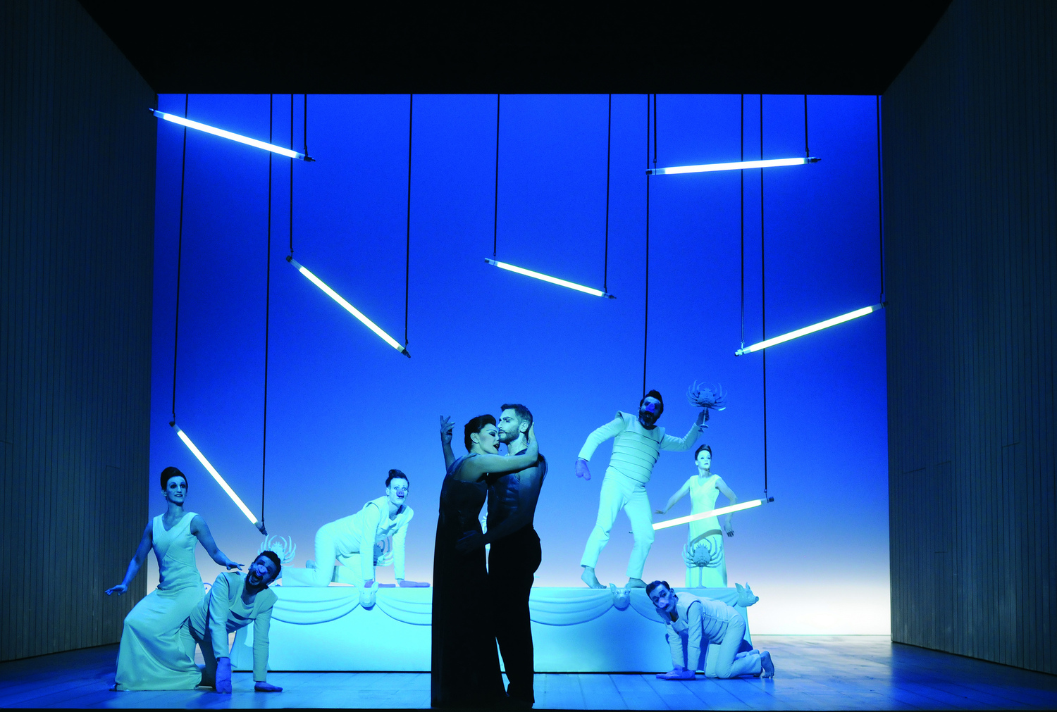 Questa centralità dell’occhio nasceva da un legame profondo con le arti visive. Wilson è stato regista, ma anche architetto, disegnatore, scenografo, collezionista. Il suo teatro prende forma dentro uno spazio costruito con lo stesso rigore di un quadro di Mondrian o una scultura di Giacometti. Le luci non sono mai funzionali: sono segni pittorici, tagli di senso. I costumi, le posture, i ritmi dei movimenti sono orchestrati come in una coreografia plastica. Ogni spettacolo è un oggetto visivo totale, un dispositivo percettivo.