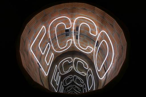 «Il primo passo è stato comprare un dizionario Italiano/Inglese e, dato che lavoro con quest’idea delle lettere speculari da molti anni, so quali sono quelle che si possono doppiare. Ho composto undici parole e fra queste ho scelto le più poetiche e anche le più aderenti al progetto espositivo, parole che creano la connessione più forte con il contesto locale. Dopo ho fatto dei test chiedendo a svariate persone se quelle parole avevano ancora quel significato preciso e se sono ancora in uso nel linguaggio corrente. Il fulcro del lavoro è quali connessioni io posso fare fra l’installazione, le parole e la storia. Per me la storia è anche il modo con cui viene raccontata, è una metafora che con gli anni si trasforma in una favola, in una “fiction”. Ecco perché uso la metafora degli specchi e del doppio, cioè di utilizzare solo metà delle parole scritte con il neon mentre il resto non è che un mero riflesso della parte reale. Il riflesso è per me la rappresentazione della storia che ripete se stessa per tante volte fino a svanire».