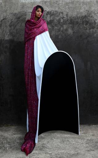«Sì, certamente il riferimento della mia cultura è classico-canoviana, con questa matrice di purezza e sintesi. Di Piero della Francesca, ad esempio, mi ha sempre colpito la parte metafisica, che è importante anche nell’Islam e nel mio modo di esprimermi. È una linea che continua. Tra l’altro la prima figura nera che ho realizzato, riprendendo la rappresentazione del mantello, è quella di Fatima con un grande manto vuoto. Fatima appartiene a due culture, è una figura santa contesa da due religioni, i musulmani sciiti e i cristiani. Una rappresentazione della pietas che rimanda, ancora una volta, al vuoto e a qualcosa di sconosciuto».