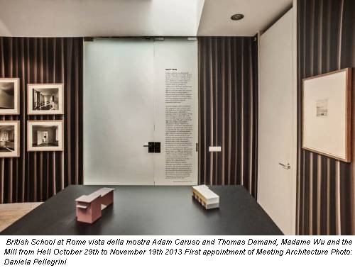 La tenda ondulata delinea lo spazio al piano terra della British School at Rome dove Adam Caruso e Thomas Demand sono protagonisti della mostra-studio Madame Wu and the Mill from Hell (fino al 19 novembre 2013), primo appuntamento della rassegna Meeting Architecture (a cura di Marina Engel), realizzata in collaborazione con il Royal College of Art.