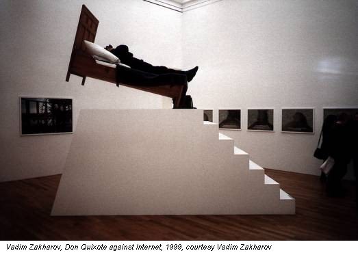 «Oggi sono molto pessimista. Don Quixote against Internet è un’opera che mostra che andiamo verso il futuro di spalle, mai di viso perché non possiamo vederlo. Possiamo vedere il presente e il passato ma del futuro possiamo solo fare analisi su cosa forse accadrà. Queste mi dicono che il futuro non è positivo in una prospettiva di dieci anni. La situazione è pessima, non solo in Russia e in Ucraina. I musulmani radicali stanno distruggendo cultura ma il mercato dell’arte è forte. Non capisco come questo sia collegato, qualche businessman dovrebbe spiegarmelo così magari sarò capace di finire la trilogia: One Danaë, One Shit e ora non so cosa fare».