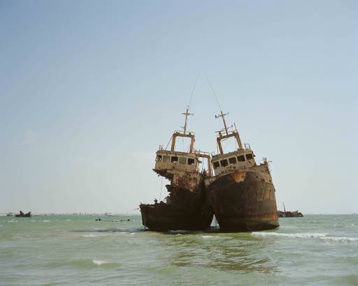 Navi fantasma ridotte a carcassa, lambite dall’oceano, abbandonate al loro destino di solitudine e declino. Per Zineb Sedira (Gennevilliers, Francia 1963, vive a Londra) questi scheletri mastodontici raccontano anche storie di emigrazione, viaggi, speranze, impotenza, disastri ambientali. La prima volta che l’artista franco-algerina si è recata lungo la costa della Mauritania, nei pressi di Nouadhibou, nel Parco Nazionale Banc d’Arguin (paradiso degli uccelli migratori) è stato nel 2008. Da allora il lavoro sta procedendo con l’utilizzo di media diversi (film, fotografia, lightbox, oggetti). In occasione della mostra “Ici l’Afrique/Here Africa”, curata da Adelina von Fürstenberg e organizzata da ART for the World al Musée des Suisse dans le Monde – Château de Penthes, Pregny-Ginevra (fino al 6 luglio) espone quattro grandi fotografie a colori della serie The Lovers e Shipwrecks: the Death of a Journey II.
