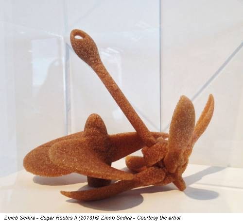 Altri lavori di questa serie sono presenti presso la galleria Riccardo Crespi di Milano in occasione della personale che si è appena aperta (fino al 19 luglio), insieme ad alcuni pezzi della serie Sweets Journeys, in cui lo zucchero di canna diventa metafora per un discorso politico e sociale sulla provenienza di questo prodotto e sul suo viaggio tra le varie culture. Il confronto tra culture diverse, del resto, è una tematica che appartiene alla storia personale e professionale della stessa Sedira, come dichiara in prima persona in una delle sue opere più celebri, Mother Tongue (2002), con cui ha partecipato anche alla mostra Global Feminisms al Brooklyn Museum di New York nel 2007.