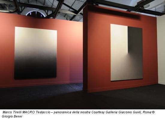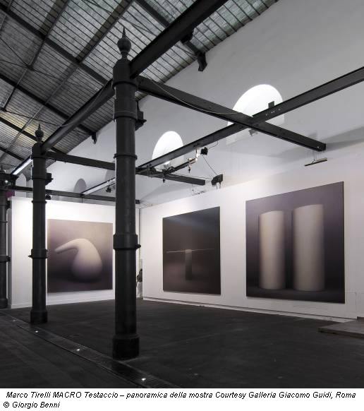 Le venticinque opere inedite, tutte alte tre metri e ideate appositamente per gli spazi del museo sono giocate sul contrasto bianco/nero per creare quello scenografico percorso di alternanza fra luce e ombra, vuoto e pieno che è la cifra stilistica distintiva dell’artista. In questi grandi nuovi lavori che indagano in maniera approfondita il rapporto tra forma e luce e tra forma riconoscibile e astrazione le figure, imponenti e assolute, sembrano emergere dalla tela, come se l’artista, lasciatosi alle spalle la bidimensionalità iniziale, cercasse di realizzare sulla superficie piatta del quadro un’immagine avvolgente e dai volumi scultorei. Il ritmo della mostra è dato anche dall’apparente contrasto espositivo che, in realtà, mette in intima relazione i due padiglioni, che diventano anticipazione e “prologo” l’uno dell’altro. Il primo è infatti allestito in maniera tradizionale con le opere alternate ritmicamente lungo le pareti, in una sorta di “continuum” visivo quasi cinematografico, mentre il secondo è stato completamente ripensato dall’artista con un’installazione ambientale “site specific”. Lo spazio, trasformato da Marco Tirelli in una sorta di luogo sacro e meditativo, è la migliore rappresentazione formale di quel “teatro della memoria” che come un “fil rouge” lega concettualmente tutto il suo lavoro. L’intento dell’artista, per altro perfettamente riuscito, è il voler coinvolgere lo spettatore in un’esperienza totale e straniante dentro un microcosmo che racconta un macrocosmo. In quello spazio conchiuso e metafisico c’è la summa del suo percorso creativo, come se le idee dalla mente dell’artista siano esplose sulle pareti dove le opere, in perenne bilico fra riconoscibilità e astrazione, sembrano dialogare fra loro.
