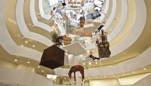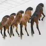 Maurizio Cattelan. We, 2010. Wood, fiberglass, polyurethane rubber and fabric. 148 cm. x 79 cm. x 68 cm. Installation view, Maurizio Cattelan, Slaughterhouse, DESTE Foundation for Contemporary Art Project Space, Hydra, Greece, June 16–September 30, 2010 Photo, Pierpaolo Ferrari. Courtesy, Maurizio Cattelan's Archive