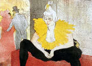 Henri de Toulouse-Lautrec (Albi 1864-Malromé, Gironde-1901), di origine nobile, si formò sulle opere degli impressionisti, specie Degas. Affascinato dalle stampe giapponesi (come il collega Van Gogh con cui fu a stretto contatto), partecipò attivamente alla scena artistica parigina nel periodo della Belle Epoque. Nelle sue opere egli ritrasse la caducità della vita e la tristezza nascosta dietro i lustrini e i velluti di caffè, postriboli, sale da ballo e locali di Montmartre che egli frequentava, emarginato dall’alta società a causa del suo aspetto deforme.