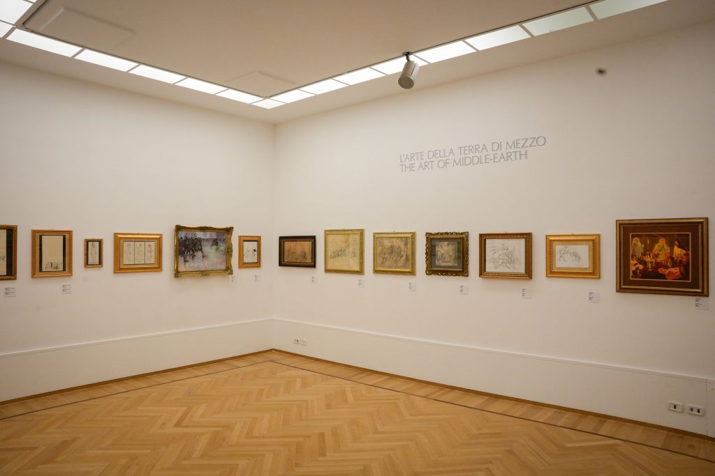 Al piano superiore, una sala di “disegni della Terra di mezzo” realizzati in anni vari senza nessuna indicazione sul criterio di scelta, né sull’uso che era stato previsto. E ancora libri. Definita «una mostra indispensabile per comprendere l’autore», la Presidente del Consiglio ci tiene a sottolineare che, «da persona che conosce molto bene la materia», l’ha trovata molto completa. «Una ricostruzione molto viva», continua Meloni, riferendosi a una mostra morta che, vista la materia e le tecnologie a disposizione ormai usate in ogni mostra, ha perso la grande occasione di essere una mostra immersiva, risultando noiosa e senza un filo conduttore. Poteva essere una mostra anche multimediale e, vista tutta la tradizione di giochi di ruolo che traggono spunto dalle opere di Tolkien, persino collaborativa, partecipativa, sperimentale.