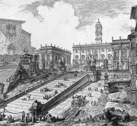 G. Piranesi, Veduta del romano Campidoglio con scalinata che va alla Chiesa d’Aracoeli, 1757