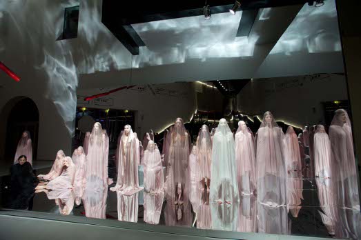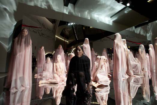 Penso siano cose importanti anche queste, ma quello che mi interessa di più è capire che succede al MAXXI. Sta scrivendo un nuovo capitolo della museologia contemporanea, accelerando quel processo di trasformazione che il museo vive da quando è nato? O, meglio, sta assumendo fino in fondo la sua identità paradossale, di istituzione nata da una radicale azione di decontestualizzazione, che ha portato qualcosa che esisteva molto prima (l’arte che era nelle corti e nelle chiese) dentro qualcosa che prima non c’era (il museo, nato poco più di 200 anni fa). Prima Quadreria, poi white box e ora seducente megastore dove la merce arte si mischia ad altre merci e donne nude e velate si stagliano per ore al suo interno davanti a un pubblico incuriosito, distratto, fotografante, nonostante i divieti, perché, prima di essere 2.0, l’arte è democraticamente di tutti?