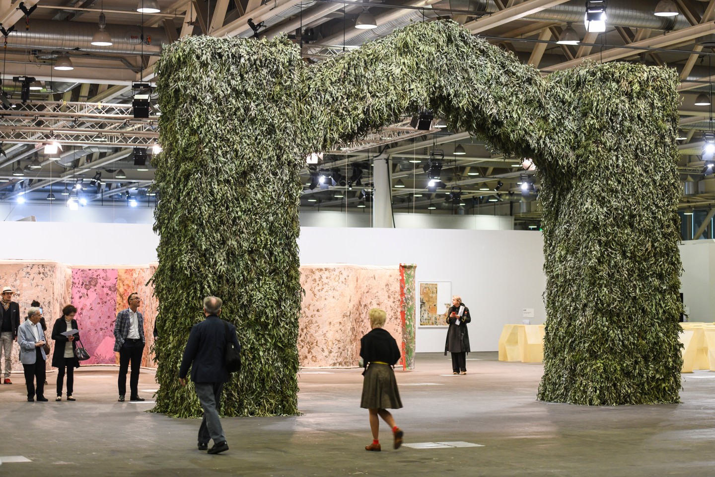 È l’opera The Sun (2018) di Ugo Rondinone ad aprire questa edizione di Unlimited ad Art Basel: il profilo del sole composto da una serie di calchi di rami in bronzo dorato, che ricordano una corona di spine. Un’opera maestosa ma allo stesso tempo minimale, essenziale ma simbolica, che fornisce la chiave di lettura dell’intero padiglione, che ospita 79 lavori di grandi dimensioni, selezionati da Gianni Jetzer, curatore delle ultime otto edizioni. Una sorta di neo minimalismo, con alcune strizzate d’occhio all’attualità, è il fil rouge che unisce molte opere esposte ad Unlimited 2019, forse non tra le più memorabili ma non priva di spunti interessanti. Poetica e rigorosa l’installazione di Sislej Xhafa Ovoid solitude (2019), una grande serranda chiusa a parete, dove al centro una porticina aperta rivela all’interno una serie di contenitori di uova, sorvegliati da un cubano, Raul Portillo Samà, seduto su una sedia davanti all’ingresso, a testimoniare la memoria silenziosa di un intero popolo. Anche Farsa (2019), l’installazione di Renata Lucas, corrisponde agli stessi criteri: una grande tenda di colore verde ospita due tende più piccole, che creano un movimento continuo dovuto agli spostamenti d’aria, per alludere alla fluidità dell’attuale situazione politica e sociale in Brasile, il paese natale dell’artista. Una riflessione sulla percezione della luce è invece alla base di Breathing Room II (2010), l’installazione di Antony Gormley composta da una struttura geometrica fluorescente immersa nella totale oscurità per 10 minuti, seguiti da 40 minuti di luce intensa e violenta, mentre Rose of Nothingness (2015) di Belu-Simion Fainaru è una grande piscina rettangolare scura piena di acqua, che viene animata da una pioggia di gocce d’acqua ad intervalli regolari, in omaggio ad una poesia di Paul Celan.