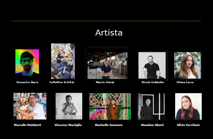 Per la categoria Artista, sarà premiato chi avrà realizzato il progetto o l’opera più interessante costruita o divulgata in ambiente digitale nel 2020. I finalisti sono: Domenico Barra, Collettivo DAPA, Marcin Gierat, Nicola Gobbetto, Chiara Lecca, Marcello Maloberti, Vincenzo Marsiglia, Marinella Senatore, Massimo Uberti, Silvia Vecchiato.