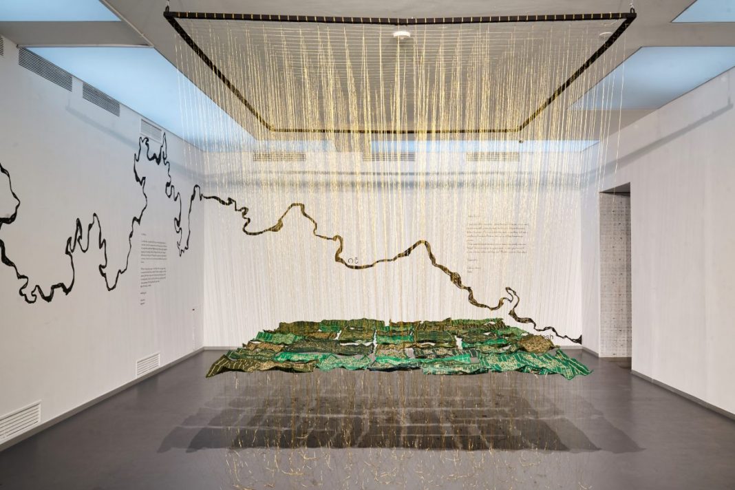 «Facendo eco alla storia della divisione del subcontinente indiano e alle conseguenti implicazioni sociopolitiche, religiose e di genere nel contemporaneo, il suo lavoro è la testimonianza di un trauma collettivo, che viene condiviso con lo spettatore ma anche trasceso attraverso l’estetica sublime ma umile e fragile dell’opera. Tratto da territori incessantemente divisi e rinegoziati da vari poteri geopolitici, Rahman tesse un’entità collettiva che si dispiega lungo un fiume che collega terre e corpi frammentati. Un ricamo galleggiante tra terra e cielo collega la condizione umana e l’aspirazione alla giustizia di genere con mitologia e spiritualità. Rahman rappresenta una futura generazione di artisti che sono impegnati negli ideali di costruzione e riparazione della comunità».