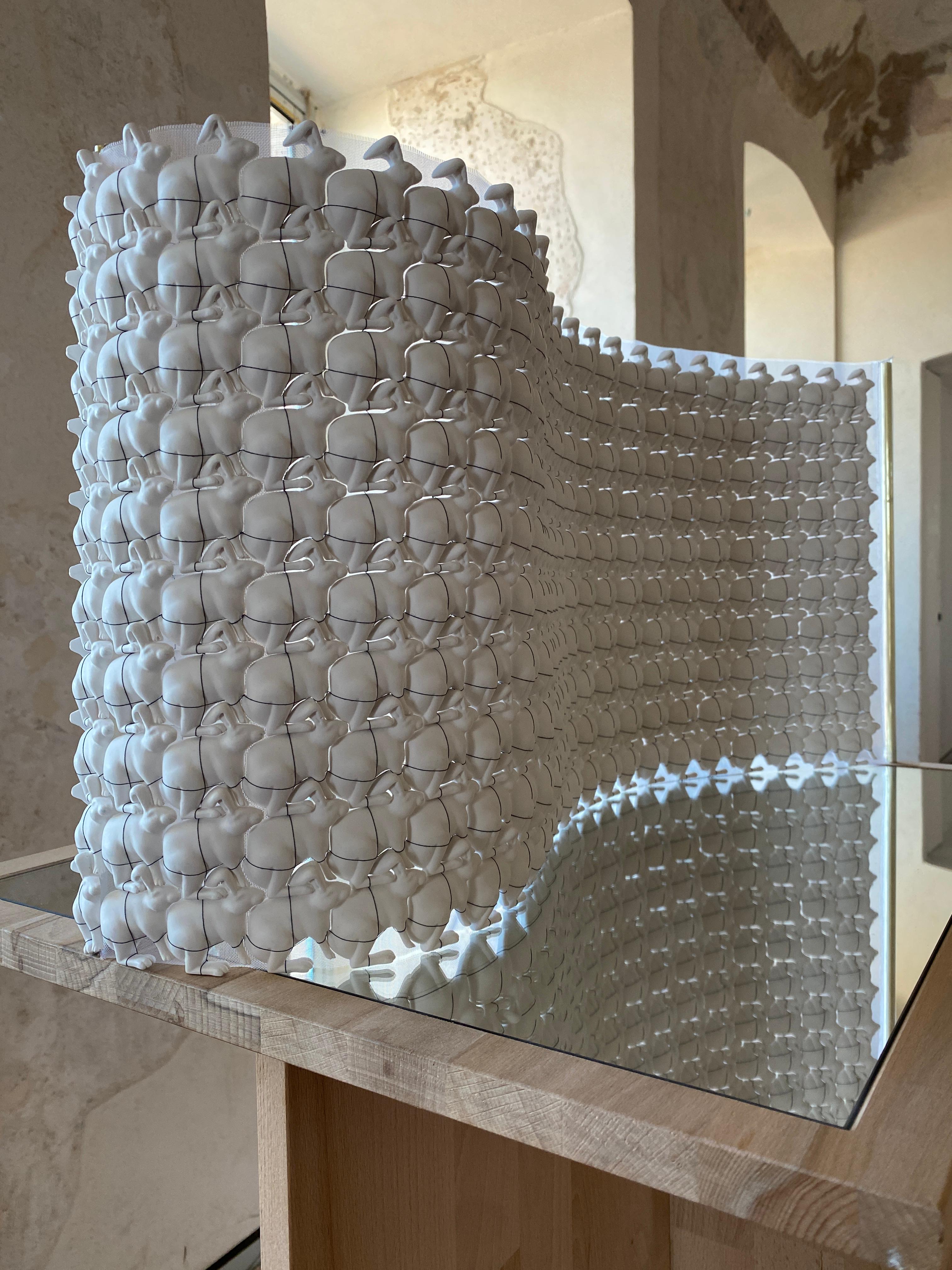 Il secondo posto è stato assegnato a Fabiola Porchi (Bergamo, 1991), autrice della scultura Rabbitskin, un bassorilievo cucito su tessuto che riflette sulle dinamiche di omologazione e perdita dell’individualità, prendendo a prestito il linguaggio modulare della decorazione per trasformarlo in veicolo critico. Terza classificata Francesca Casale, in arte SENSU (Torino, 1990), con l’installazione olfattiva Sphaera: un viaggio sensoriale e cromatico che invita il pubblico a esplorare le pieghe della memoria e dell’immaginazione attraverso l’odore, evocando dimensioni intime e corporee spesso trascurate dall’esperienza museale.