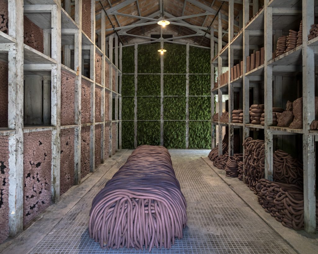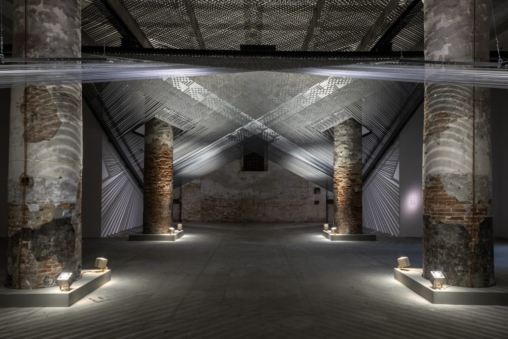 Il Collettivo Maori Mataaho, che dedica il Leone «alle famiglie e alle generazioni del e per il futuro», ha creato una luminosa struttura intrecciata di cinghie che attraversano poeticamente lo spazio espositivo. Facendo riferimento alle tradizioni matrilineari dei tessuti, con la sua culla simile a un grembo, l’installazione è sia una cosmologia che un rifugio. Le sue impressionanti dimensioni sono una prodezza ingegneristica che è stata resa possibile solo dalla forza e dalla creatività collettiva del gruppo. L’abbagliante modello di ombre proiettate sulle pareti e sul pavimento rimanda a tecniche ancestrali e fa pensare a usi futuri delle stesse.