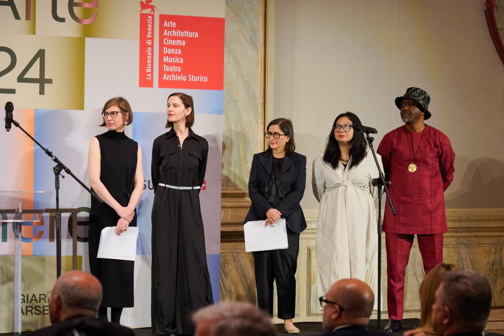 Su proposta del curatore Adriano Pedrosa, deliberata dal Cda della Biennale di Venezia, la Giuria di questa 60. Esposizione Internazionale d’Arte della Biennale di Venezia – presieduta da Julia Bryan-Wilson, curatrice americana e professoressa alla Columbia University e composta da Alia Swastika, curatrice e scrittrice indonesiana; Chika Okeke-Agulu, curatore e critico d’arte nigeriano; Elena Crippa, curatrice italiana; e María Inés Rodríguez, curatrice franco-colombiana – ha assegnato il Leone d’Oro per il miglior partecipante all’Esposizione Internazionale a Mataaho Collective, quello per la miglior partecipazione nazionale all’Australia, rappresentata da Archie Moore, il Leone d’Argento per un promettente giovane partecipante a Karimah Ashadu; e ha conferito a Samia Halaby, La Chola Poblete e alla Repubblica del Kosovo le menzioni speciali.