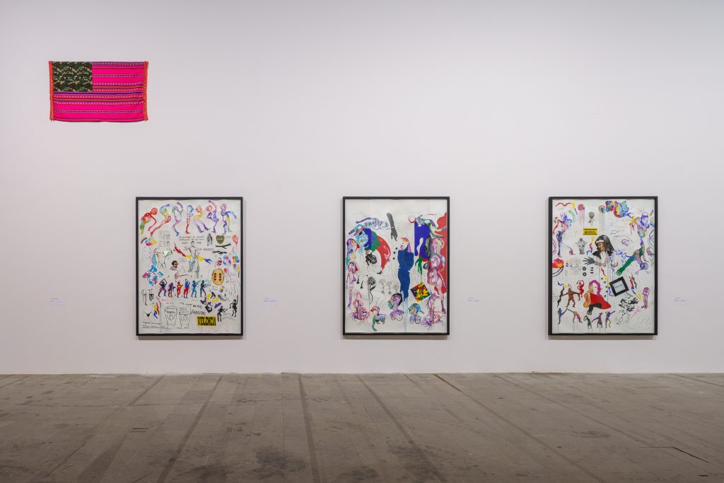 In questo quieto padiglione di grande impatto, Archie Moore ha lavorato per mesi per disegnare a mano con il gesso un monumentale albero genealogico della First Nation. Così 65.000 anni di storia (sia registrata che perduta) sono iscritti sulle pareti scure e sul soffitto, invitando gli spettatori a riempire gli spazi vuoti e a cogliere la fragilità intrinseca di questo archivio carico di lutto. In un fossato d’acqua galleggiano i documenti ufficiali redatti dallo Stato. Risultato dell’intensa ricerca di Moore, questi documenti riflettono gli alti tassi di incarcerazione delle persone delle Prime Nazioni. Questa installazione si distingue per la sua forte estetica, il suo lirismo e la sua invocazione per una perdita condivisa di un passato occluso. Con il suo inventario di migliaia di nomi, Moore offre anche un barlume alla possibilità di recupero. «Come l’acqua scorre nei canali della laguna Venezia scivolando verso il mar adriatico per poi raggiungere gli oceani, così credo in un sistema che coinvolge tutte le cose. Tutti noi condividiamo delle responsabilità:, oggi e in futuro prendiamoci cura di ciò che abbiamo intorno», ha dichiarato ritirando il premio.