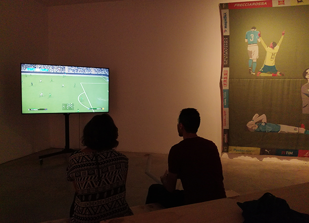 Ma il loro percorso è ampio e articolato e spesso si esprime attraverso installazioni coinvolgenti e relazionali, come quando, nel 2018, al Monastero del Carmine di Bergamo, presentarono Karma Fails-Meditation is Visualization, sessioni di meditazione fisica e mentale a partecipazione pubblica, intrecciando le pratiche della performance con quelle del rilassamento e della lettura guidata. Oppure come per la “partita” di calcio virtuale tra movimenti artistici al MAMbo di Bologna: «Quando ciascuna formazione è composta di 20 giocatori che impersonano degli artisti reali nell’aspetto fisico e nelle loro caratteristiche di gioco, allora i visitatori sono messi in una posizione particolare, molto più simile a quella del pubblico dello stadio: non sono in difetto, ma hanno il pieno controllo dei loro idoli, sono parte integrante dell’opera e il loro coinvolgimento influisce nettamente sulle prestazioni e sulla qualità di un artista o un gruppo», ci spiegavano in un’altra intervista.