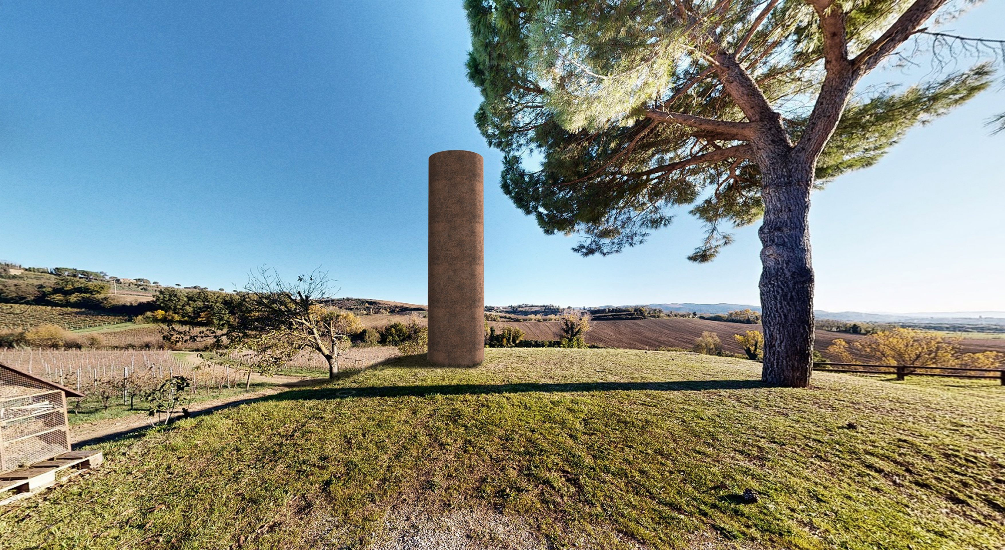 La sua pratica è radicata in un’indagine sulle geometrie elementari e sulla materia, che viene interpretata non come oggetto astratto ma come presenza viva, in dialogo con il contesto e con l’esperienza umana. In Tempo lineare e tempo ciclico, questa ricerca trova una sintesi limpida, radicandosi nel paesaggio umbro con una verticalità essenziale, che ascolta e restituisce la voce del luogo.