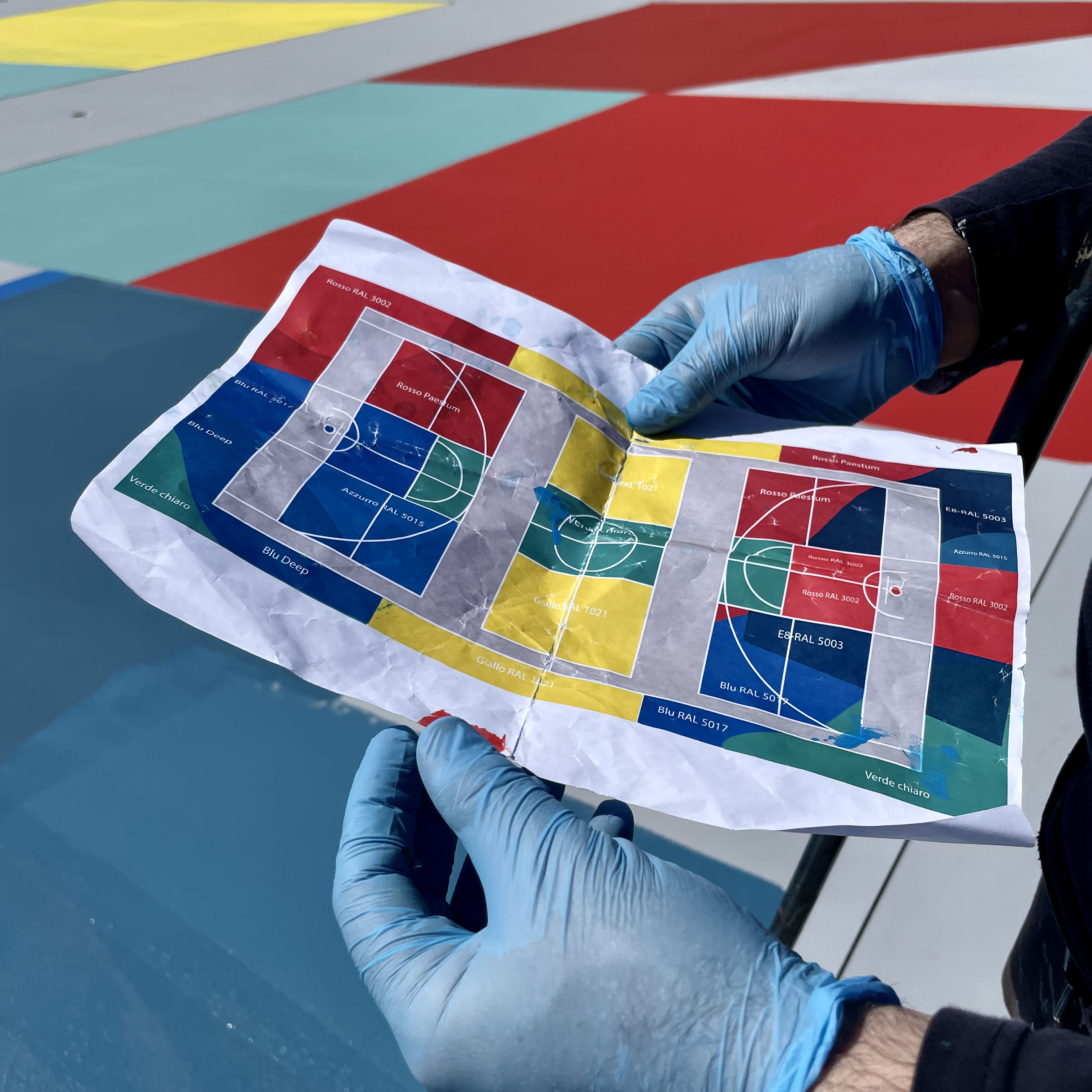 Mirko Pierri, fondatore dell’associazione a.DNA, ha curato la direzione artistica del progetto e con il suo staff ha seguito la realizzazione di tutte le opere, eseguite da tre artisti di street art e arte pubblica di fama internazionale: Alice Pasquini, che ha firmato le superfici verticali, Giulio Vesprini e UNO, che hanno dipinto la loro arte sui campi da gioco e il tracciato panoramico perimetrale. Le pareti verticali sono state dipinte con Airlite, tecnologia che si applica come una pittura e che contribuisce a purificare l’aria.