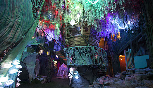 Vi ritroverete per esempio in una casa su un albero o in un piccolo old west ranch alimentato dal movimento di criceti indefessi, in grotte luminescenti ed in un corridoio del tempo con uno scheletro di mammut fosforescente. Ogni visitatore sceglierà il suo percorso, camminerà, si arrampicherà o si calerà in profondità, ed ognuno vivrà le proprie esperienze e sensazioni in questo mondo fantastico realizzato con strumenti artistici sofisticati ed all’avanguardia. Musica ed effetti luminosi accompagneranno questo vostro viaggio al termine del quale avrete bisogno di un po’ di tempo per riaffrontare la realtà che vi aspetta fuori da lì.
