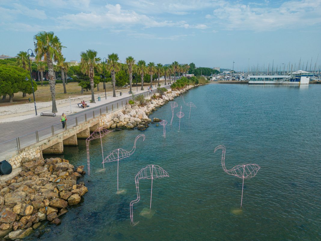 I profili sottili dei fenicotteri rosa, la ruota come forma creativa e poetica, le potenzialità delle azioni collettive. Sono tutte pensate nel segno della sostenibilità e dell’ambiente le installazioni che, fino al 29 ottobre, saranno visitabili a Cagliari, lungo la pista ciclabile affacciata sul mare che parte dal Molo Ichnusa, di fronte all’hub di Luna Rossa, e che culmina al Padiglione del Sale: Ami_CA è il titolo del progetto, promosso da 2050 To People, associazione no profit nata per diffondere conoscenza e realizzare progetti che puntano sulla sostenibilità ambientale e sociale.