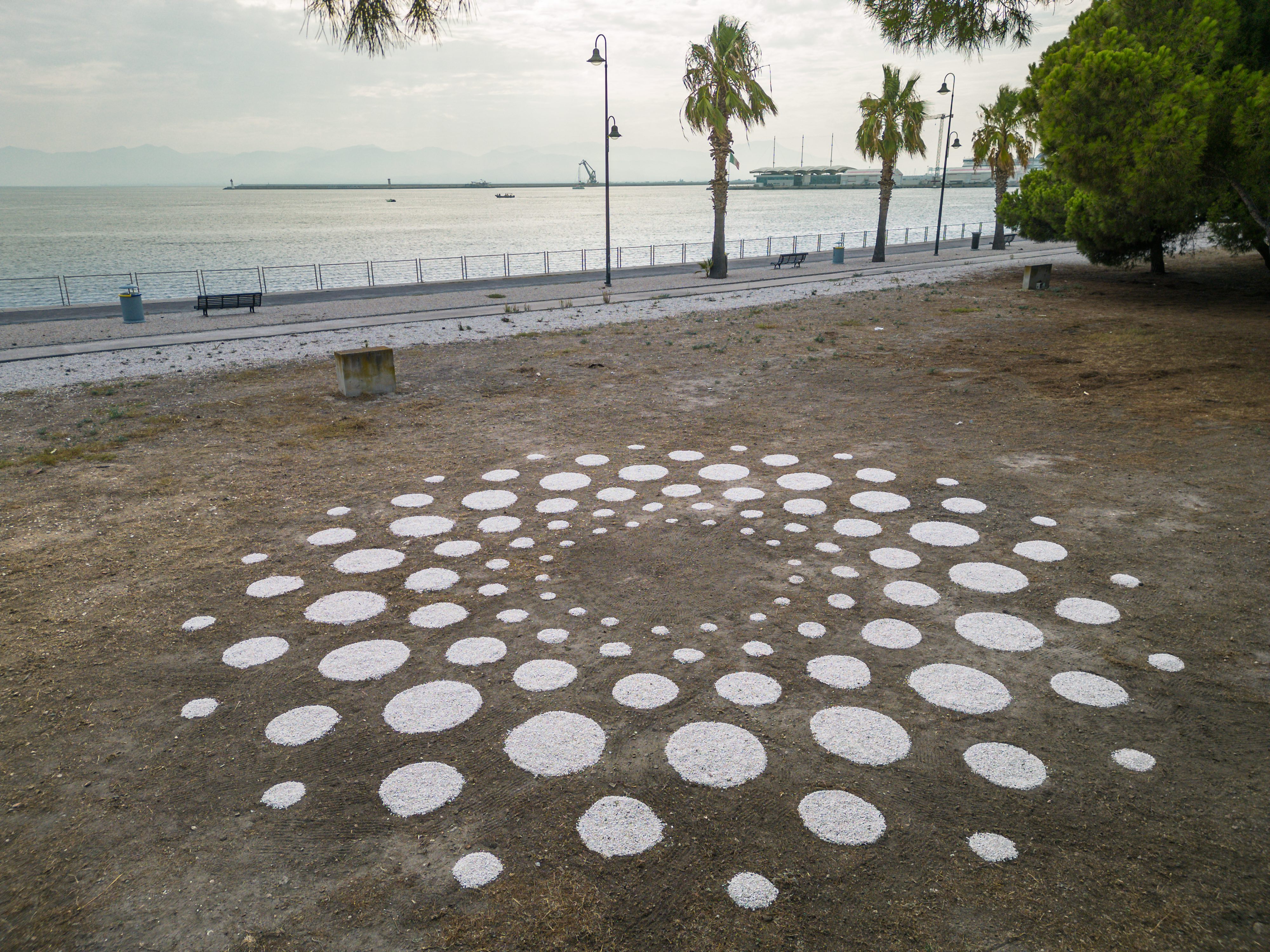 Mandala è l’installazione di Land Art Romeo Pinna, opera realizzata sul territorio con sostanze ammendanti quali concimi, sabbia drenante e posidonia. L’assorbimento naturale della composizione disperde le sostanze naturali nel terreno rinnovando il loro ciclo vitale.