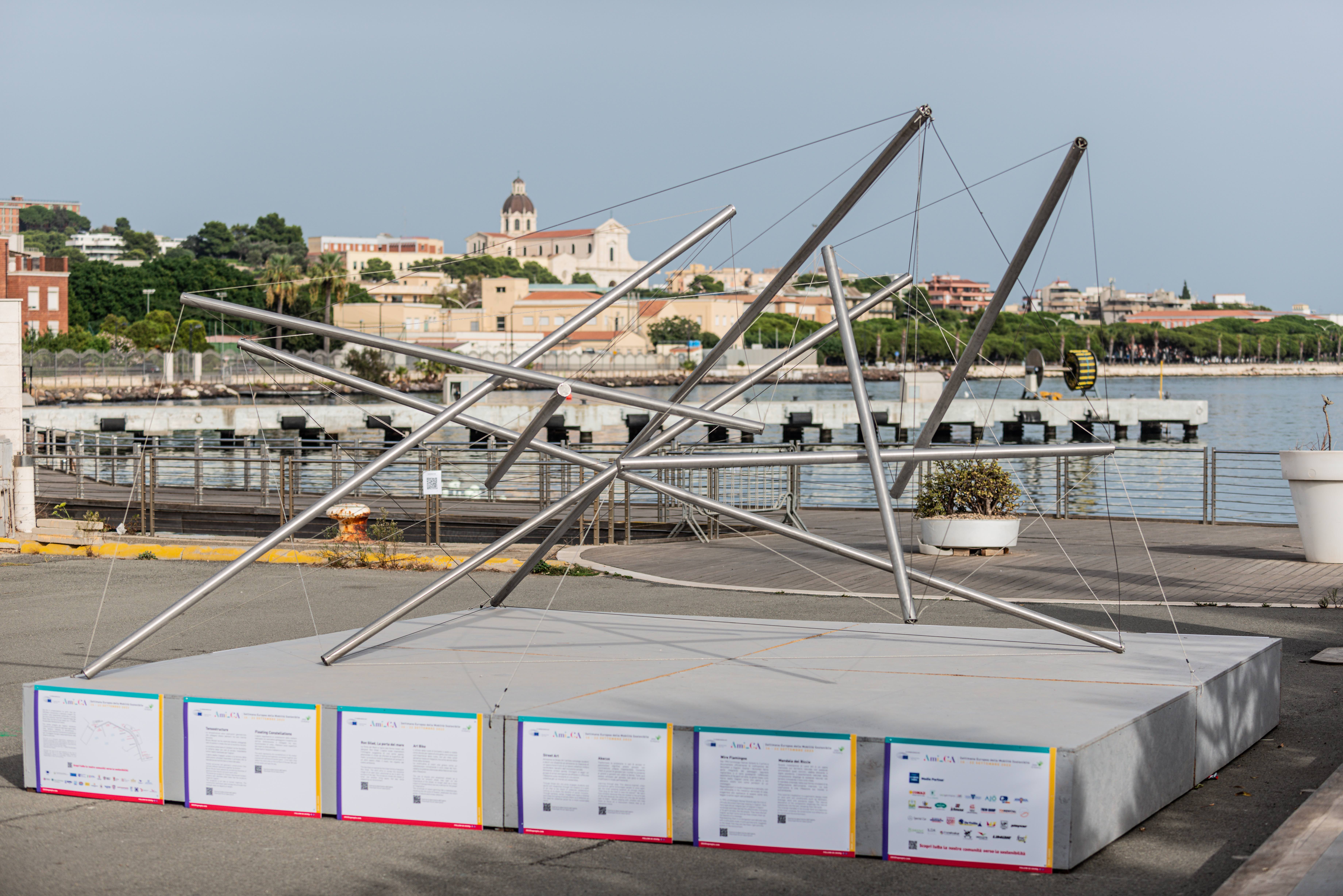 Presentato in occasione della Settimana della Mobilità 2023, il progetto può contare su una vasta rete di partner istituzionali, con il patrocinio della Commissione Europea, dei Ministeri dell’Ambiente e della sicurezza energetica, delle Infrastrutture e dei trasporti, della Cultura e del Turismo, oltre che della Marina Militare e dell’autorità di Sistema Portuale del Mare di Sardegna, della Regione Autonoma della Sardegna e dal Comune di Cagliari. Il progetto Ami_CA ha previsto la realizzazione di un percorso di installazioni, con la direzione artistica di Andrea Forges Davanzati ed Erica Zmitrovitch come co-founder dell’associazione insieme a Maria Sias e Martina Monni, in dialogo con la comunità e gli artisti del territorio dell’associazione Castia Art che, per l’occasione, hanno creato delle opere d’arte diffuse a Cagliari.