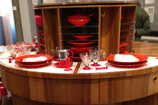 Tra quelle superbe raccolte di teiere, vasi, suppellettili che sprofondano oltre 150 anni fa, affiorano nonni, bisnonni, case di campagna, salotti, foto di famiglia. All’inizio del lunghissimo tavolo pieno di coltelli, ne ho riconosciuti alcuni d’argento, nello stile San Marco, con una lama che ricorda la silhouette di una gondola, dove campeggia con elegantissima grafica la parola, Venezia. Sono uguali a quelli che ho ereditato dal bisnonno, anche i miei hanno la lama di ferro e non di acciaio inossidabile, come nella produzione odierna. Ho provato la soddisfazione di aver conservato un esempio di produzione artigianale. Mi ha guidato nella grande ammirazione per le sale da pranzo di Eugenio Quarti, di Gerardo Dottori, del tavolo su cui mangiava D’Annunzio a Gardone, per quelli attorno ai quali mangiavano mamme con bambini, dipinti da De Nittis, Philip Rumpf, Plinio Nomellini. Ecco la guida del Victoria and Albert, ovviamente più ridotta. C’è un’attenzione esplicita all’Italia, ai grandi campioni dell’origine del design (la Wiener Werstatte, Charles Mackintosh), a straordinarie suppellettili giapponesi e orientali. Ci sono gli utensili contadini, le “gavette di ghiaccio” della Prima Guerra Mondiale, ma il confronto è così dispari che si dimenticano. Mentre l’immaginazione va a mille rispetto a tavole imbandite nella splendida luce di argenti, cristalli, vetri soffiati.