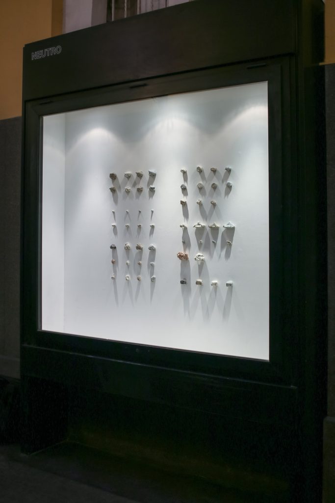 Di contro abbiamo un allestimento molto pulito e per certi versi quasi “archivistico”, tanto che al passante distratto potrà sembrare di osservare le teche di un museo archeologico. Quanto è stato importante uno spazio così caratterizzato per il tuo lavoro da NEUTRO?