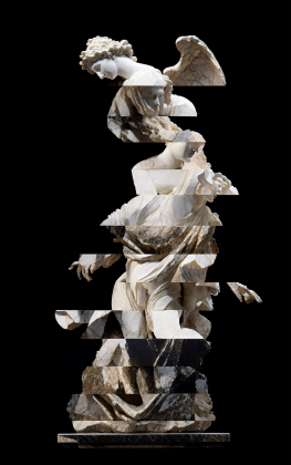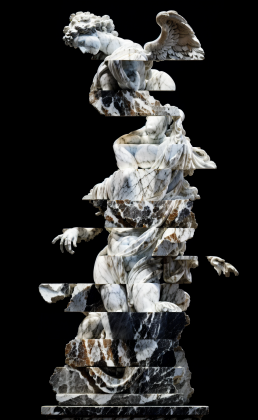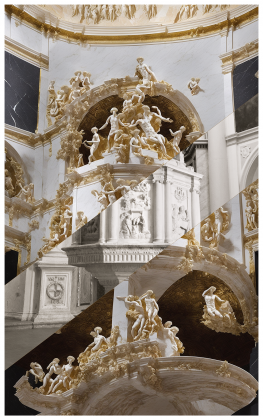 La Fondazione Carla Fendi presenta “Tutto è numero” che vuole essere un’esplorazione del legame profondo tra musica, matematica e creatività. Nello specifico, per il lavoro di Gabriele Gianni si tratta di arte computazionale generativa, di cui si sta parlando molto; di robotica e tecnologia la Fondazione si occupa da diverso tempo. In questa installazione l’intelligenza artificiale ha creato immagini, voci e soprattutto contenuti, a partire dalle domande dell’artista. Quelle dell’IA sono risposte matematiche ma se vogliamo anche filosofiche, in qualche modo sta esprimendo un suo parere: da qui il link tra la creatività, la musica e la matematica e poi l’evoluzione dell’algoritmo, quindi della stessa intelligenza artificiale. L’opera di Gabriele Gianni parla di arte computazionale generativa oltre che produrla e la vediamo nelle quattro nicchie della chiesa sconsacrata nella piazza del Duomo, che un tempo contenevano delle statue. Su input dell’artista, l’intelligenza artificiale si è divertita a ipotizzare, disegnare e produrre le immagini che vanno a sostituire quello che c’era e che oggi non vediamo più. In questo modo, lo spazio si riattiva in un’atmosfera suggestiva animata anche dal suono. In una successione di figure, vediamo la statua in essere, nel suo processo di nascita: dal marmo grezzo al marmo lavorato e rifinito.