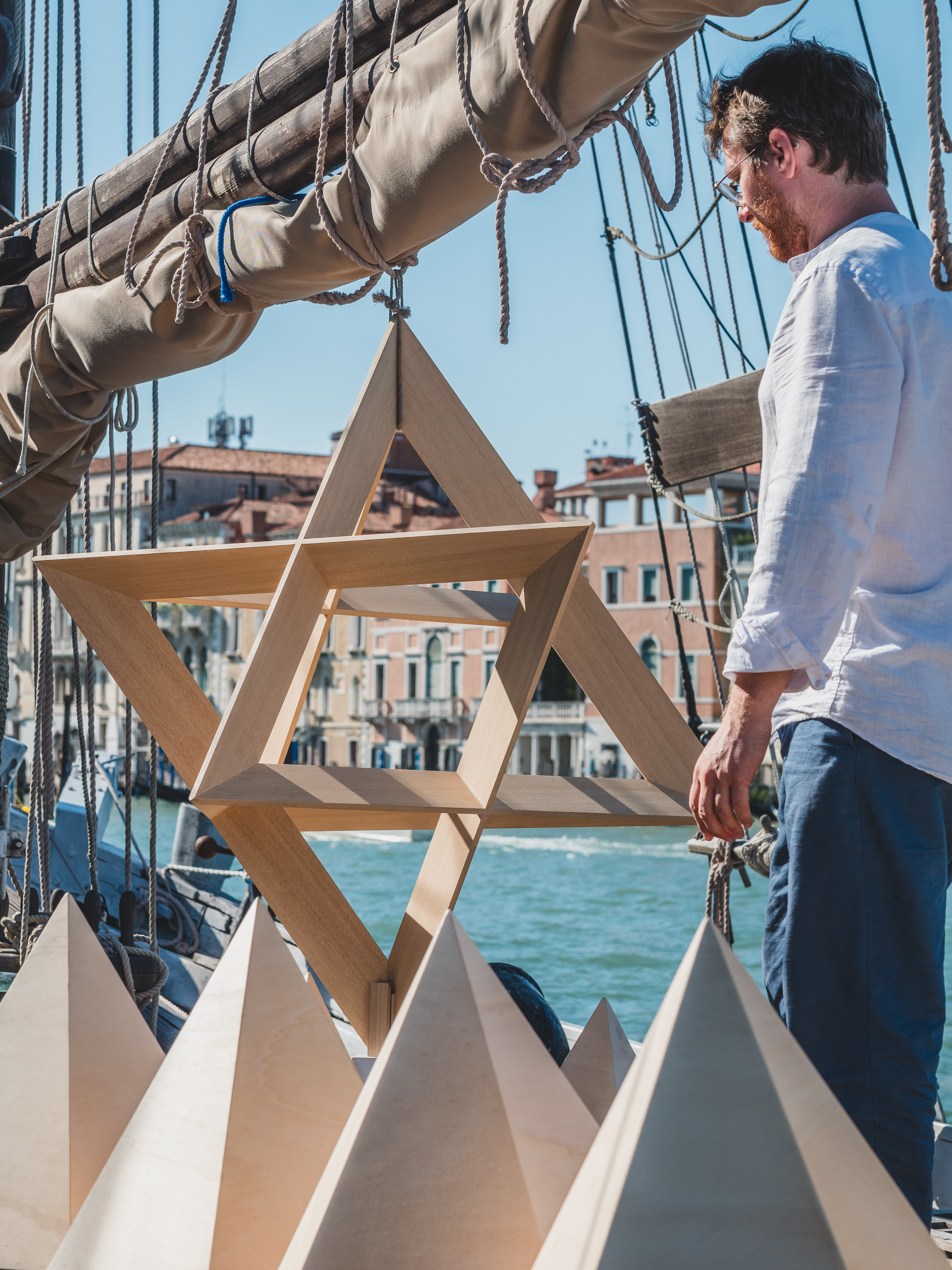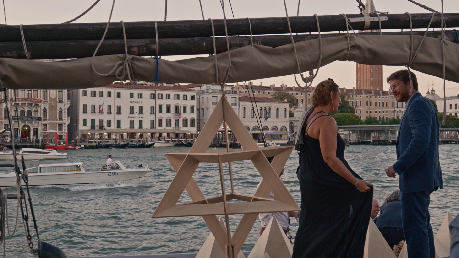 In occasione della 80ma Mostra Internazionale d’Arte Cinematografica di Venezia, Riccardo Benedini torna con il progetto Artista a bordo in collaborazione la Galleria Rossana Orlandi. Quest’anno è protagonista il designer del suono Jacopo Gonzato per una nuova esperienza sensoriale che si incontra con i talenti emergenti del cinema premiati a Venezia. Location d’eccellenza è stata Il Nuovo Trionfo, l’ultimo trabaccolo ancora navigante sul versante italiano del mare Adriatico. Un perla della marineria veneziana che, con i suoi quasi 100 anni di storia, affascina ancora oggi l’immaginario collettivo grazie al suo spettacolare ormeggio in Punta della Dogana, proprio all’imbocco di Canal Grande, nel cuore pulsante di Bacino San Marco.