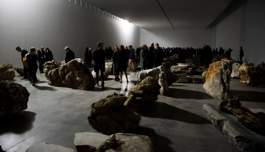 Passiamo alle Fondazioni. Ritorno in grande stile della Sandretto Re Rebaudengo con Adrian Villar Rojas, l’artista argentino appena 35enne che, dopo essersi fatto notare alla Biennale di Venezia del 2001 e aver sedotto il pubblico a dOCUMENTA 13, oggi lo divide tra chi lo continua ad amare nonostante alcune debordanze baroccheggianti – un eccesso di nature morte collocate sulle rocce che vengono da Istanbul dove Villar Rojas ha cambiato il progetto che fino allora aveva pensato per Torino – e chi invece lo trova più debole e meno convincente di prima. Divisione che si è già verificata alla Biennale di Istanbul, dove Villar Rojas aveva portato il suo zoo fantastico. Qualunque sia il giudizio, resta innegabile che il progetto presentato in una abbuiata e svuotata Fondazione sia molto forte e dimostri l’eccellente tenuta dell’istituzione ospitante.